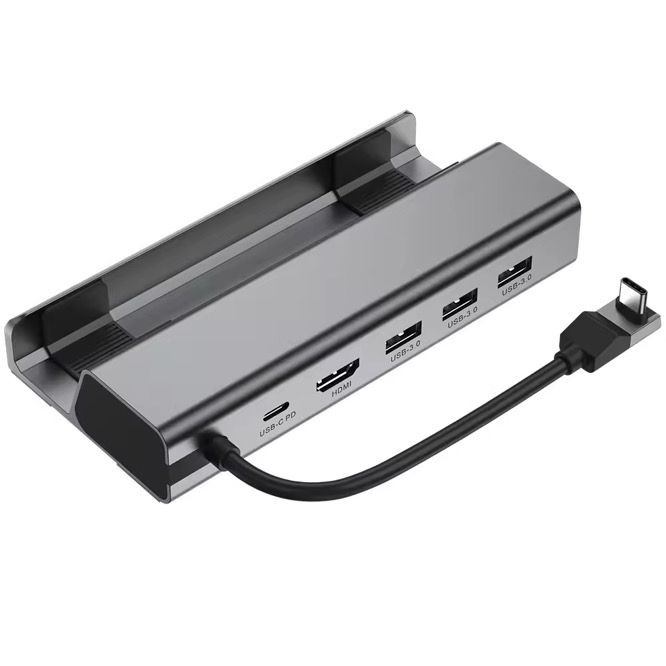 Hub USB-C 7 en 1 multiport avec support. 3 ports USB 3.0, HDMI, USB-C PD, lecteur de cartes SD/Micro SD. Connectivité étendue pour ordinateur portable, tablett